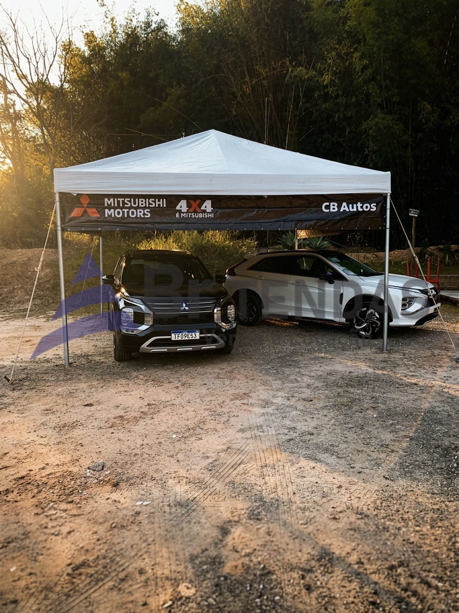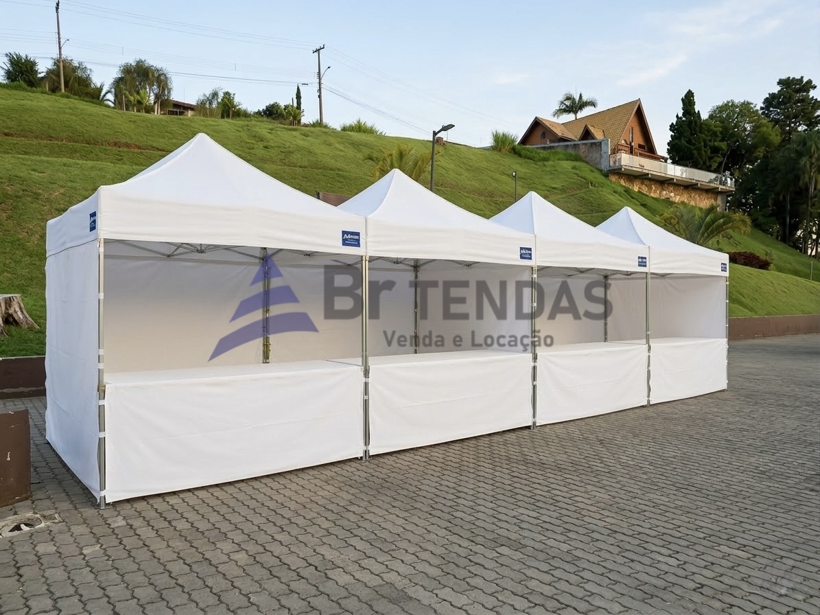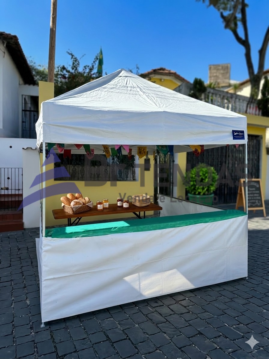 Um dos modelos mais utilizados, perfeito para feiras, stands promocionais, eventos gastronômicos e áreas de atendimento.